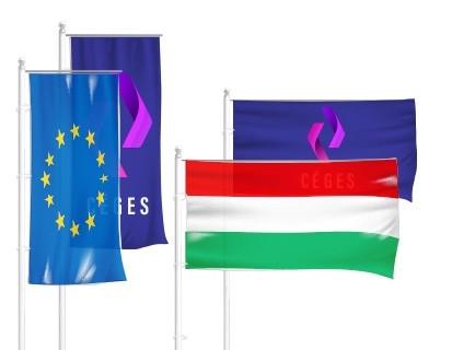 Emblémázott zászlónál alapból bal oldalra kerül a karabiner, de kérésedre változtathatunk.